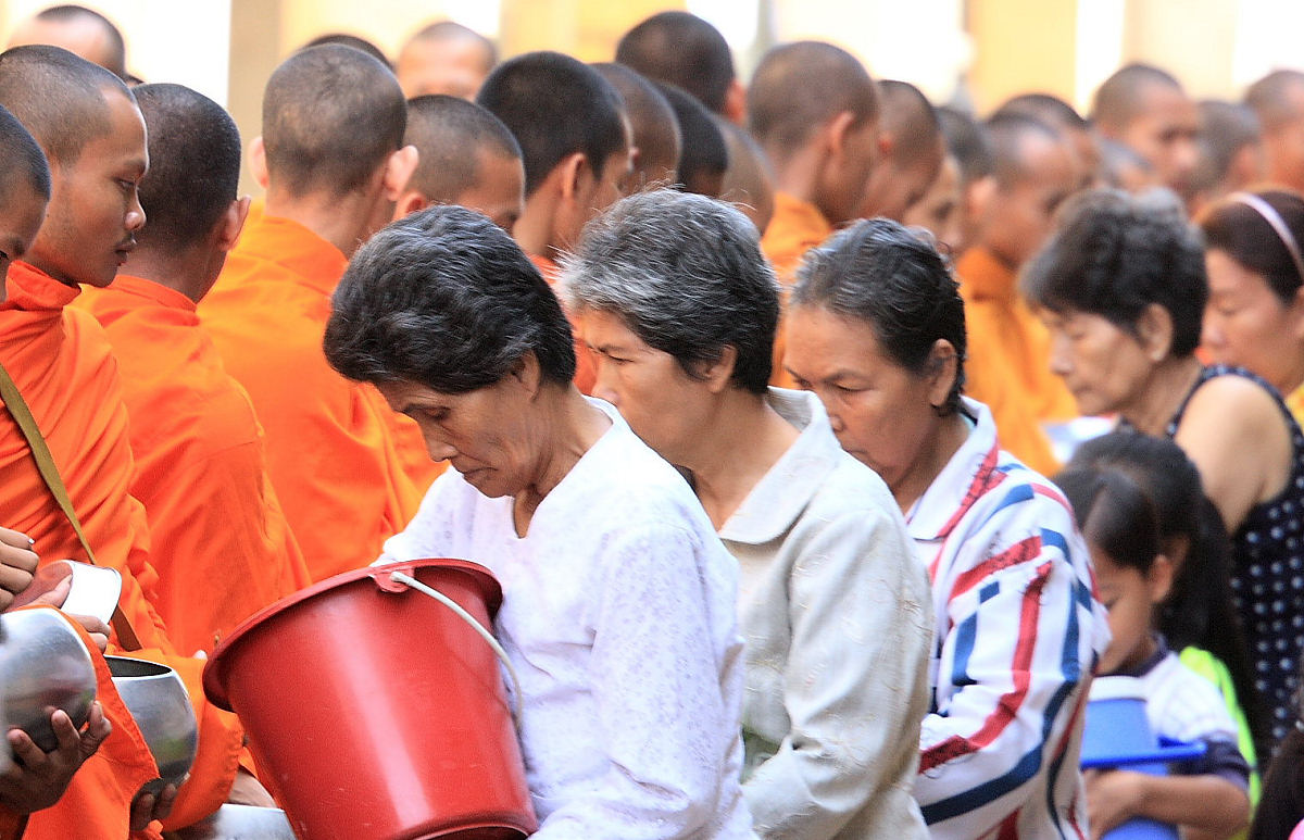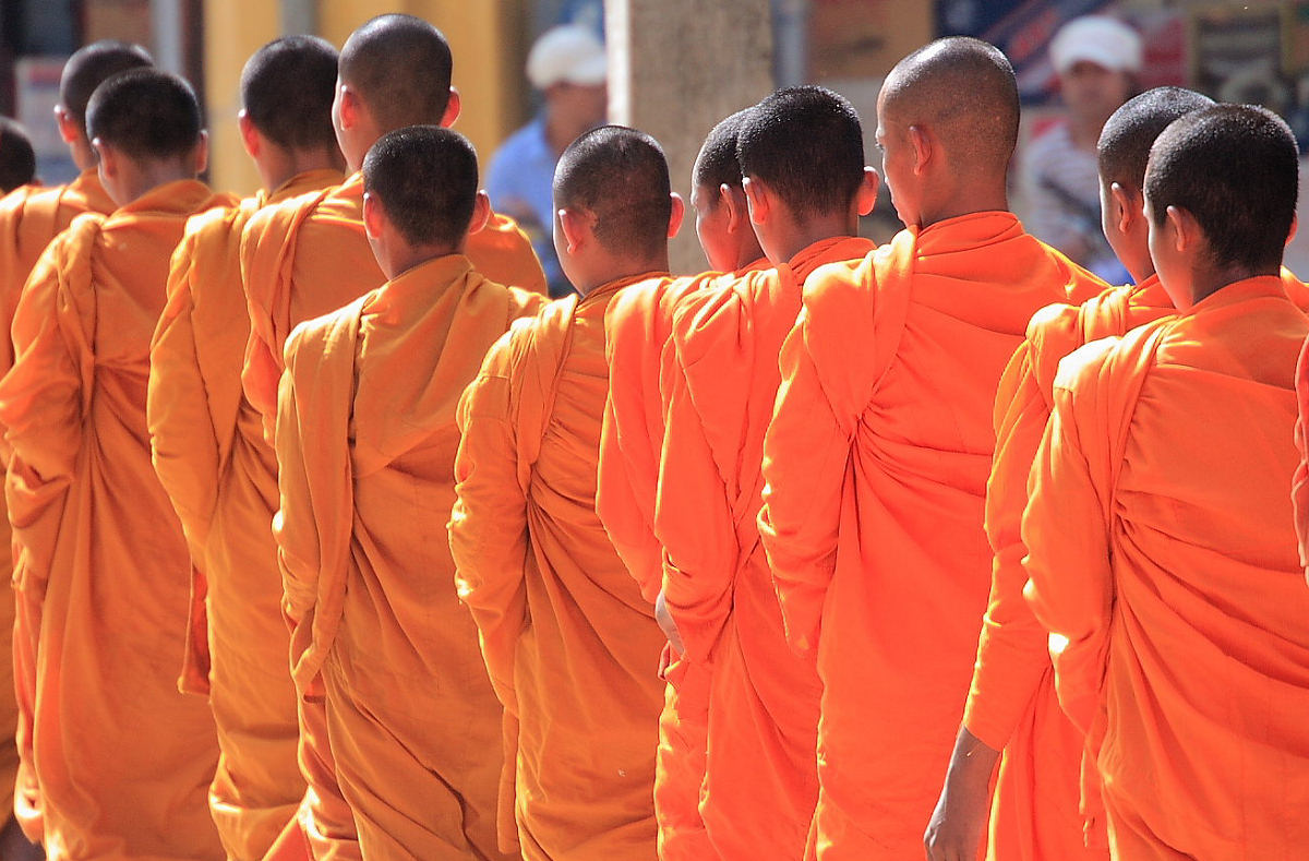Monks Collecting Alms in Battambang
