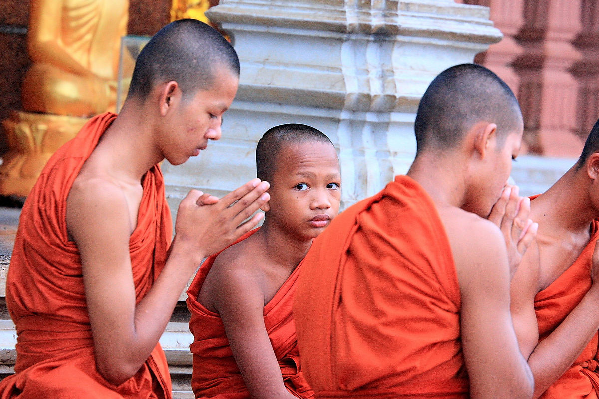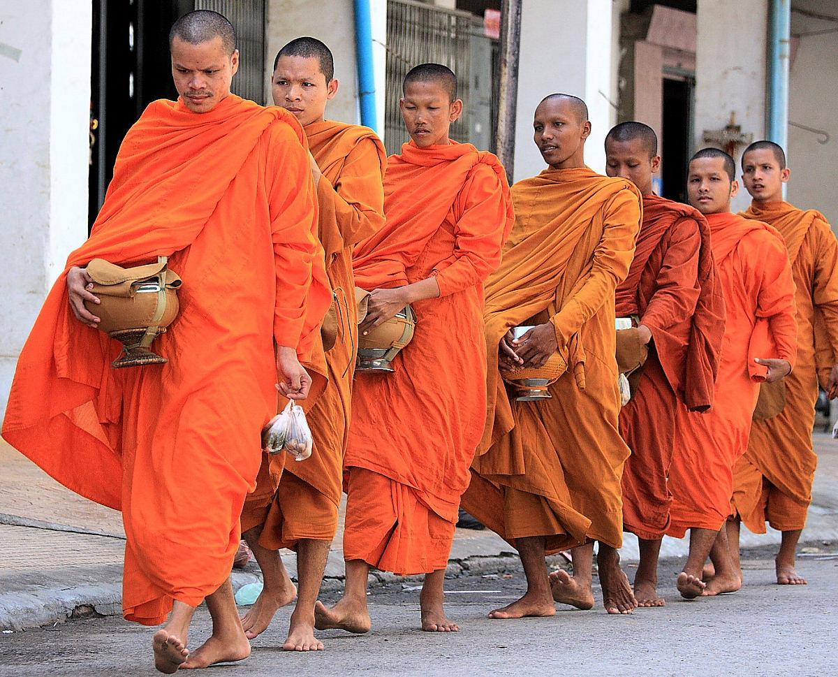 Monks Collecting Alms in Battambang