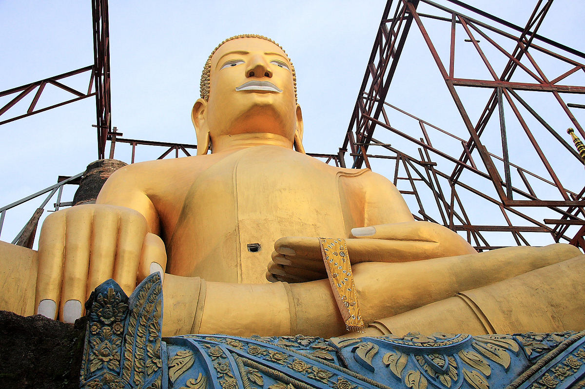 It's easiest to create the Buddha first, and then build around it