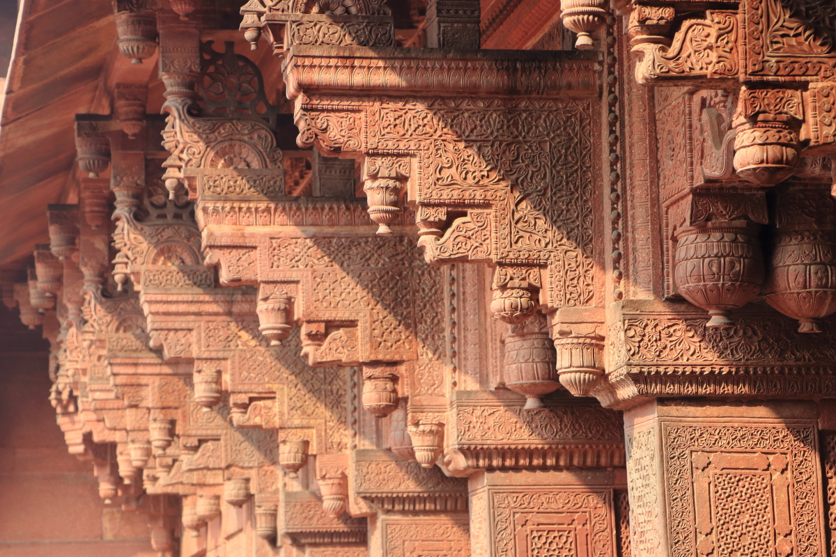 Many of the original palace buildings have been replaced, but the Jahangiri Mahal is original, and features intricate carvings and inlaid stone. It was built for the wives of Akhbar, and other women of the imperial household.