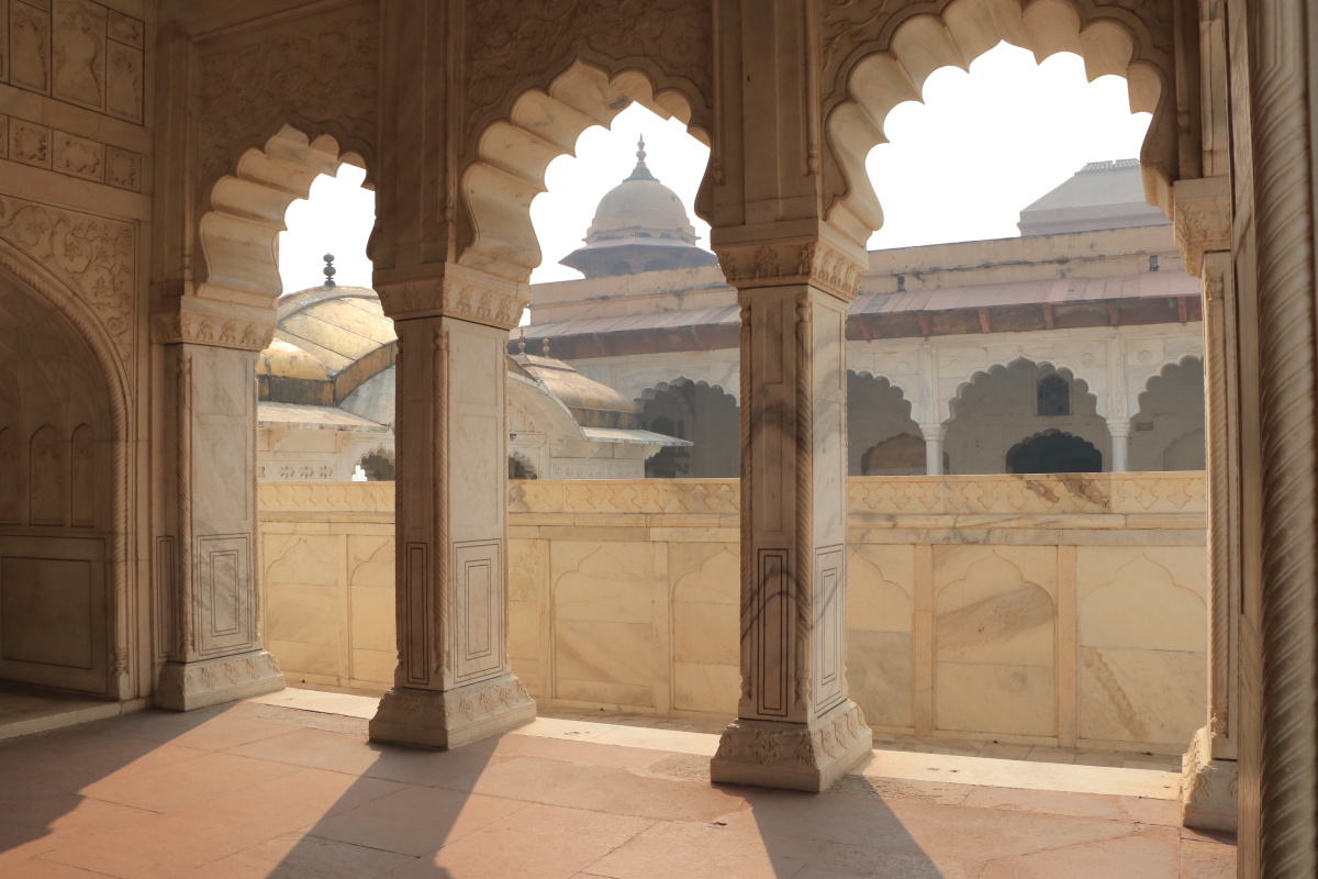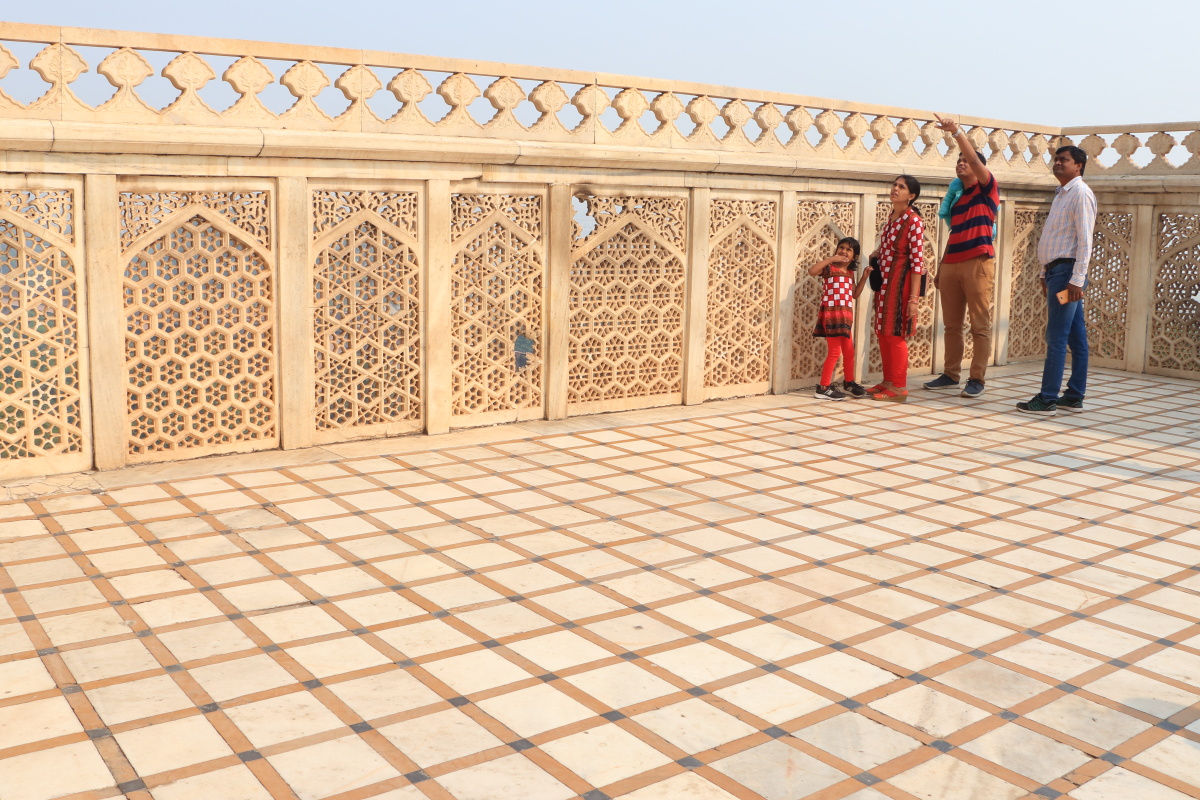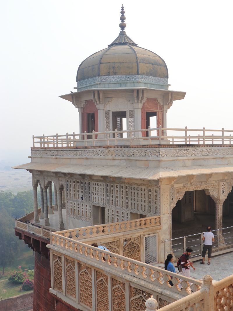 The Musamman Burj is an octagonal white marble tower featuring a great view of the Taj Mahal (when it's not hazy). After Shah Jahan was deposed by his son, he was imprisoned here with his favourite daughter until his death.