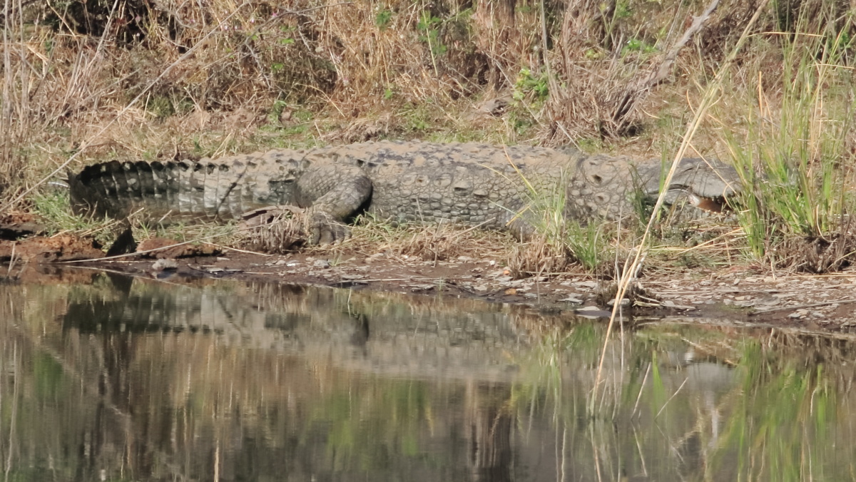 ... Probably not! This crocodile was photographed from the same spot as the shot above, and although freshwater crocodiles are not as large as their saltwater cousins, this one was at least 12 feet long
