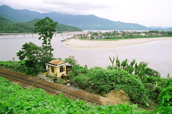 The main road passes through a tunnel, and the roads meet up again on a spit of land at Lang Co. |