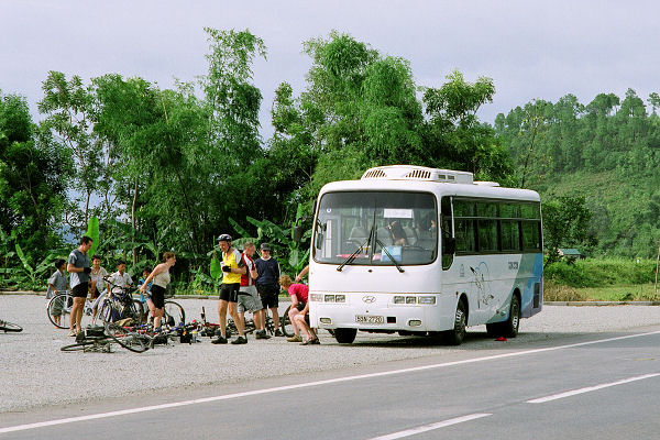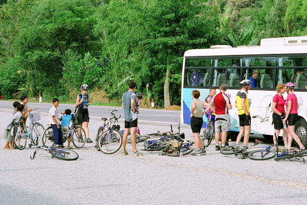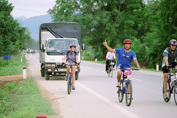 5 minutes after we were dropped off in Danang it started to rain, and the weather followed up all the way up to the top of Hai Van pass. Fortunately, it improved considerably for the perilous ride down the other side. This ended up being the longest ride of the trip, covering the 115km from Danang to Hué into a head-wind!